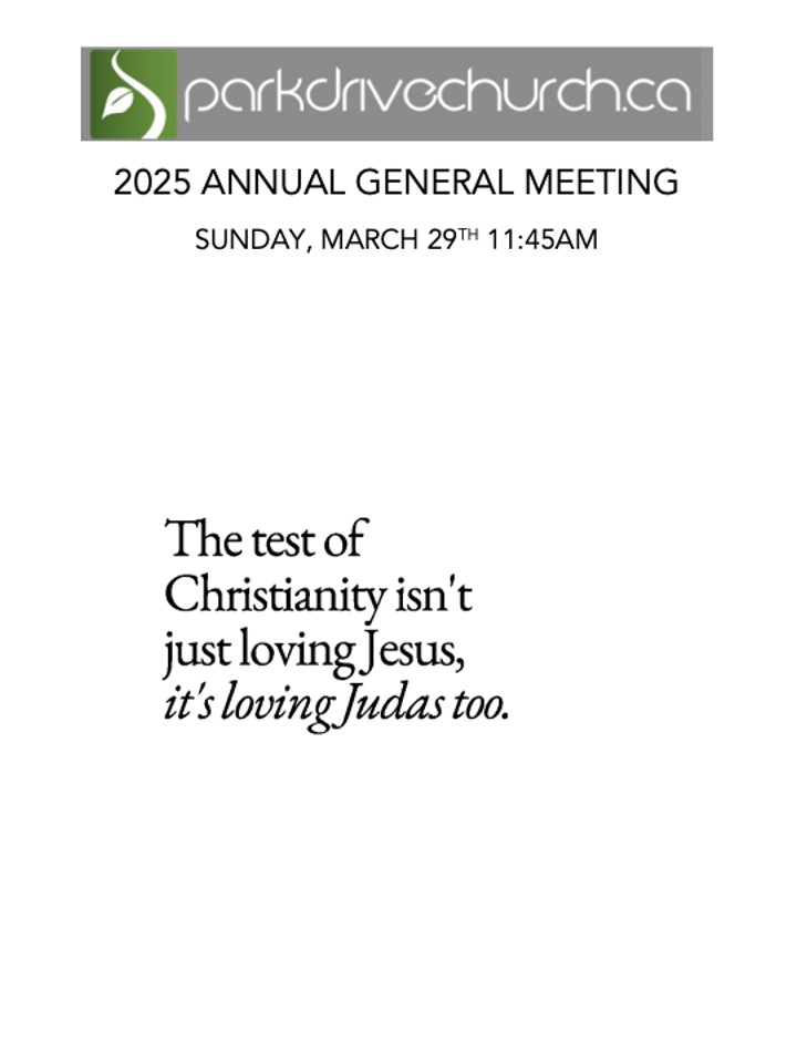 Our 2025 Annual General Meeting will be held on March 29th at 11:45am following morning worship (all invited). The report for the business is provided here to download or read in pdf. format. A paper copy of the report is available at the church office. Please take the time to prepare ahead by reading the reports in advance. We’re so grateful for all the God has done with our church family, and we’re excited to see the family growing and reaching out in our community!